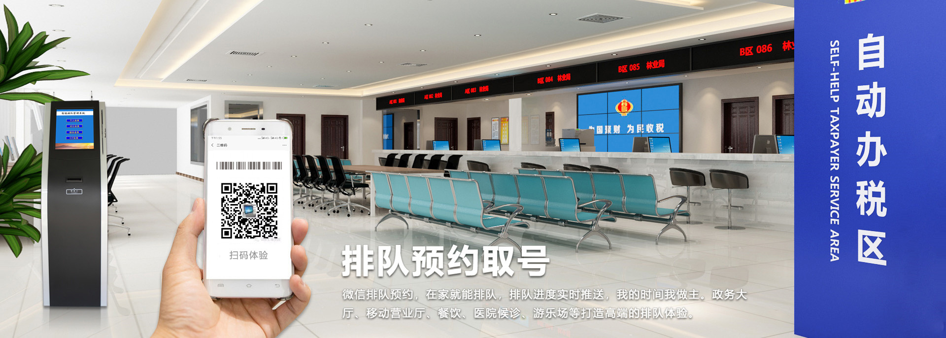 查看詳情一、系統(tǒng)背景目前,大部分辦事大廳的排隊(duì)方式為傳統(tǒng)取號(hào),即客戶(hù)需到大廳里通過(guò)取號(hào)機(jī)獲取相應(yīng)的業(yè)務(wù)排隊(duì)序號(hào)。這種排隊(duì)取號(hào)的方式能很好的解決在辦理業(yè)務(wù)中所遇到的排隊(duì)擁擠和混亂等現(xiàn)象,但是其劣勢(shì)也比較突出:1、排隊(duì)時(shí)間的不確定;2、進(jìn)廳之后發(fā)現(xiàn)排隊(duì)等候隊(duì)伍很長(zhǎng);3、去辦事大廳辦理業(yè)務(wù),花半小時(shí)到達(dá)辦事大廳,取號(hào),再等30-60分鐘甚至兩個(gè)小時(shí)時(shí)間,最后花10-15分鐘甚至更少時(shí)間用于實(shí)際辦業(yè)務(wù);4、還有的人取了號(hào),出去辦事,估摸著時(shí)間折返回辦事大廳,時(shí)間的拿捏當(dāng)然是很困難的,因?yàn)槟銦o(wú)法準(zhǔn)確的估算每個(gè)人辦業(yè)務(wù)花費(fèi)的時(shí)間,人數(shù)越多,這種時(shí)間越難把握。匯通微信預(yù)約排隊(duì)系統(tǒng)方案給排隊(duì)帶來(lái)極致體驗(yàn)。二、系統(tǒng)概況......