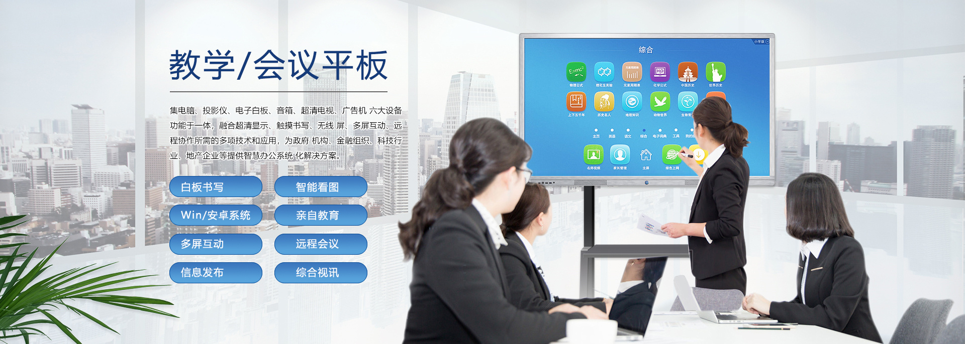 查看詳情在信息急劇膨脹、互聯(lián)網(wǎng)快速發(fā)展、競(jìng)爭(zhēng)愈加激烈的商業(yè)社會(huì),“開(kāi)會(huì)”已經(jīng)成了職場(chǎng)人士最為熟悉的一種工作方式。尤其是企業(yè),工作中需要通過(guò)許多大大小小的會(huì)議交流信息、解決問(wèn)題和作出決策。會(huì)議的最終目的是提高企業(yè)運(yùn)作的效率,但是許多的企業(yè)卻往往陷入了“低效率”的泥潭。場(chǎng)景一:在與客戶(hù)的洽談會(huì)上!準(zhǔn)備好的PPT竟發(fā)現(xiàn)打不開(kāi)了!場(chǎng)景二:開(kāi)會(huì)啦!與會(huì)人員陸續(xù)進(jìn)入會(huì)議室,人手一疊厚厚的資料,一時(shí)間,整潔干凈的會(huì)議室一下子沸騰起來(lái),會(huì)議討論聲,不停翻找資料的刷刷聲好不“熱鬧”!場(chǎng)景三:炎炎夏日,在小“黑”層里,投影機(jī)發(fā)出陣陣熱浪,讓周?chē)揪驮餆岬娜烁拥男母庠辏镁貌荒芷届o下來(lái),更何從談起會(huì)議質(zhì)量!場(chǎng)景四:遠(yuǎn)程......