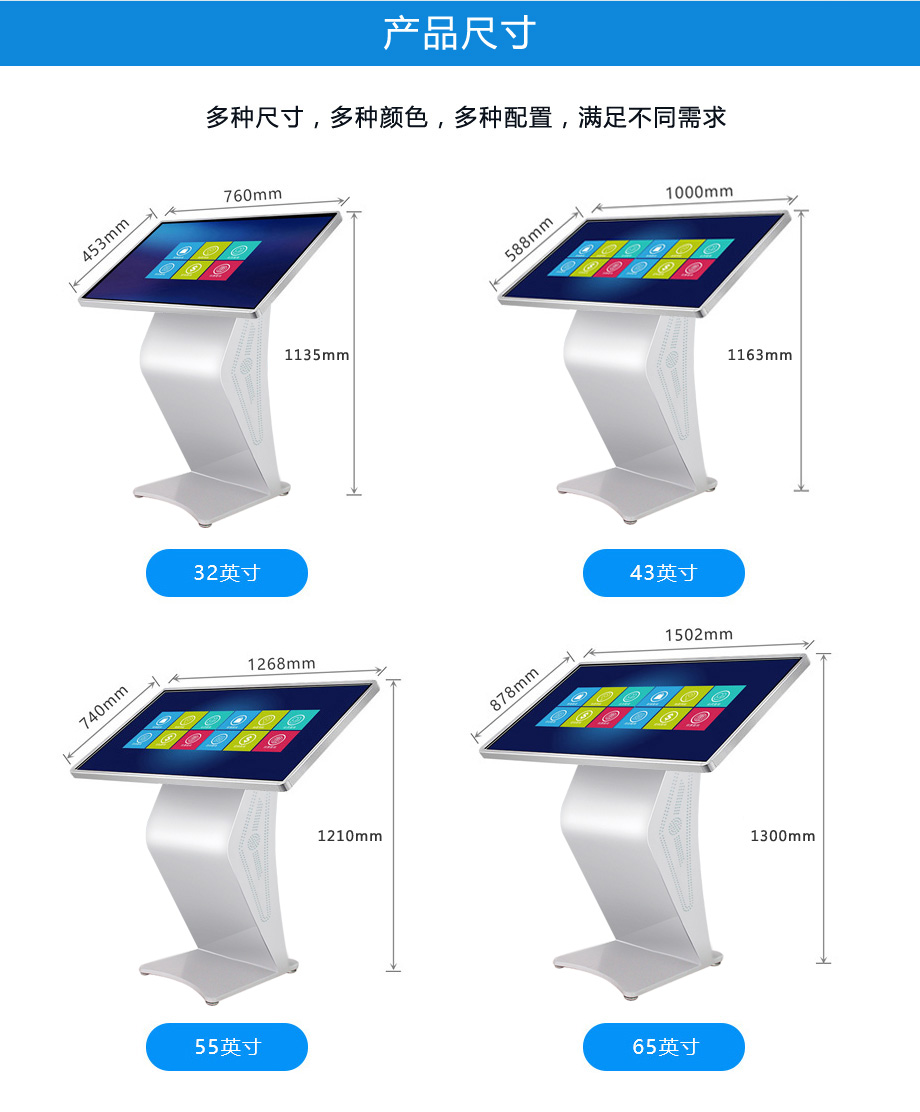 | 顯示尺寸 | 32寸 | 43寸 | 55寸 | 65寸 |